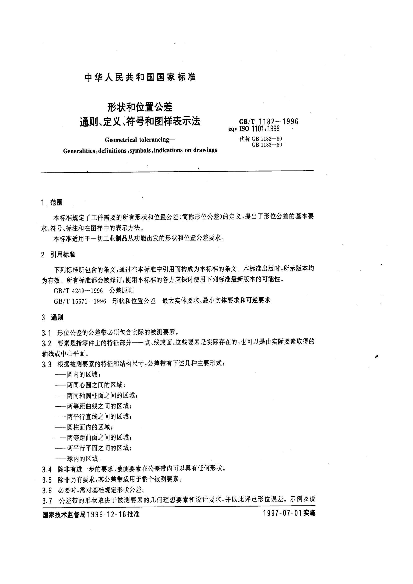 GBT1182-1996形狀和位置公差通則、定義、符號(hào)和圖樣表示法